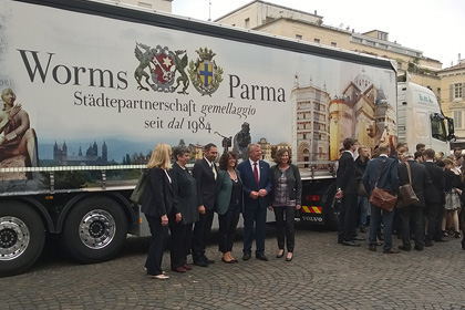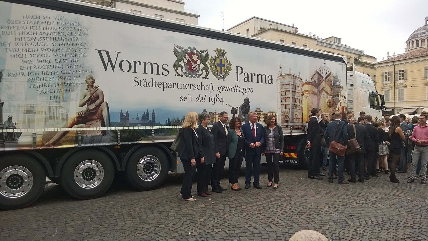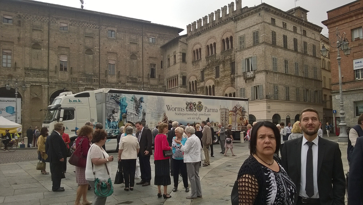 Am 20.09.2014 wurde in Parma das 30-jährige Bestehen der Partnerschaft mit Worms gefeiert. Ein Bus mit Bürgern aus Worms sowie ein weiterer Bus mit der Big Band des Gaus Gymnasium und die Ledertänzer waren mit dabei. Unser Bürgermeister Herr Michael Kissel sowie weitere Vertreter unserer Stadt nahmen ebenso wie Bürger aus Worms und Parma am Festakt im wunderschönen Ratssaal im Rathaus der Stadt Parma teil.