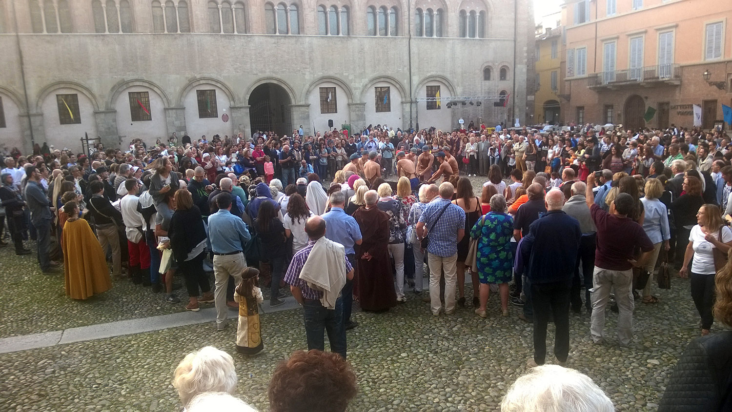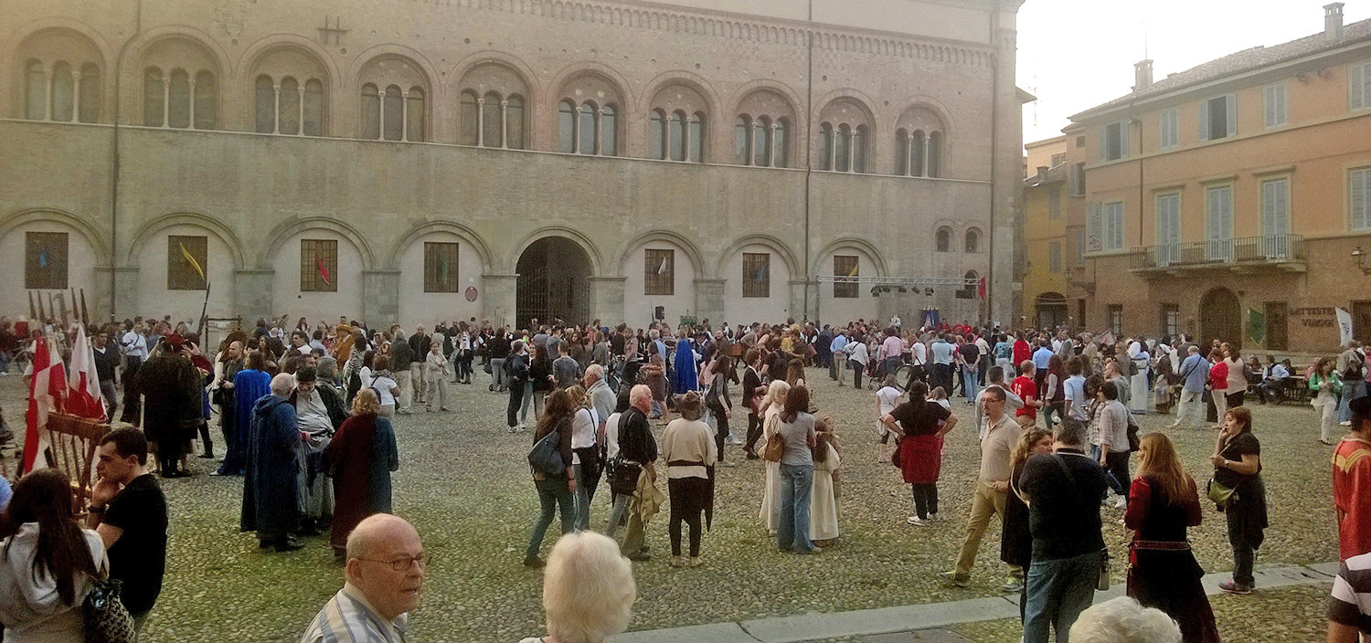 Wir durften unseren LKW mit der „Partnerschaftsplane“ im Stadtzentrum von Parma auf der Piazza Garibaldi positionieren. Dort wurde er bestaunt und es wurden mehrere Fotos wie auch Aufnahmen für das örtliche Fernsehen gedreht. Anschließend konnte man den Palio von Parma, der an diesem Wochenende stattfand und bei dem „unsere“ Ledertänzer mitwirkten, verfolgen. Ein gelungenes Wochenende in einer lebendigen, pulsierenden Stadt.